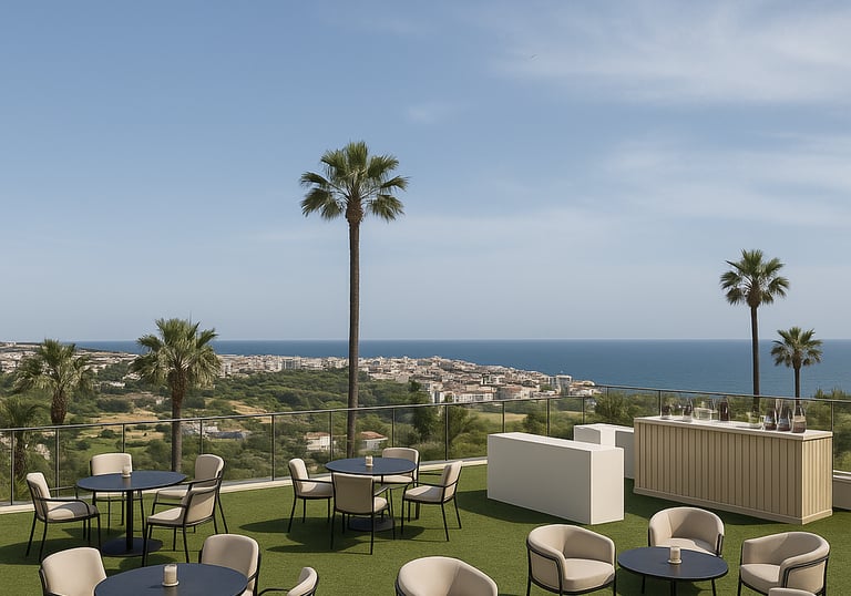 Situado em Albufeira, numa zona elevada e exclusiva, o nosso espaço oferece uma vista desafogada e deslumbrante sobre o oceano Atlântico. Rodeado pela luz única do Algarve, é o cenário perfeito para celebrações elegantes, íntimas e inesquecíveis. Um local sereno, sofisticado e inspirado na beleza natural, onde cada detalhe transforma o seu evento num momento verdadeiramente memorável.